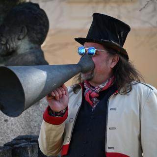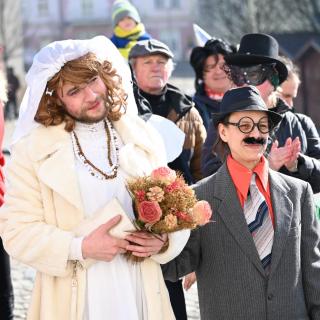 Masopustní průvod městem doprovodí harmoniky a vozembouch.
