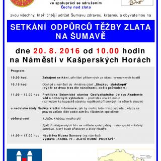 Město Kašperské Hory a Sdružení Šumava nad zlato ve spolupráci se sdružením Čechy nad zlato zvou všechny, kteří chtějí udržet Šumavu zdravou, krásnou a obyvatelnou.