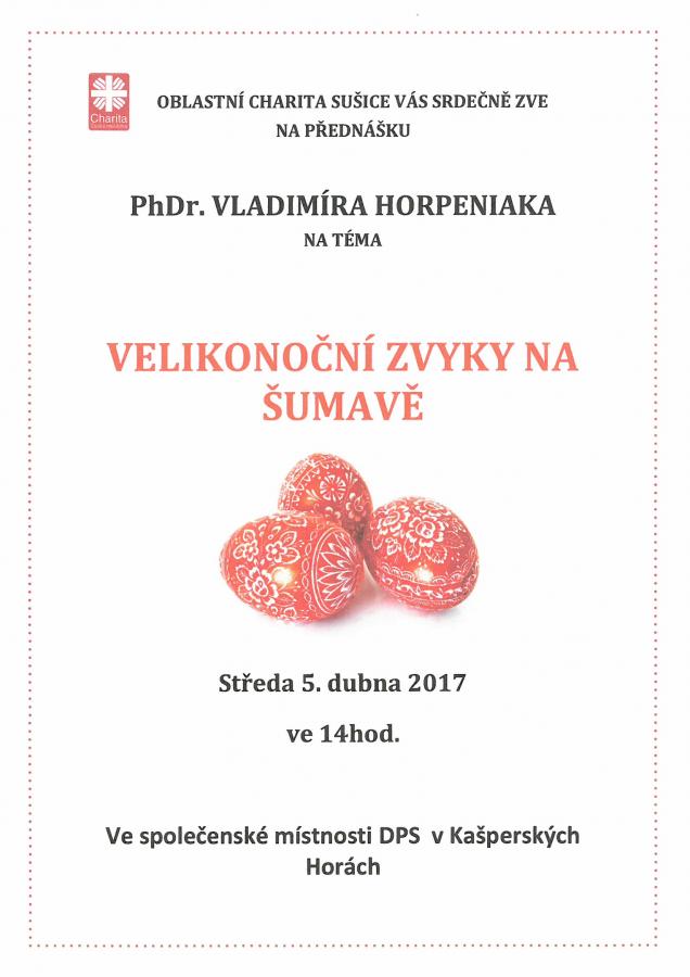 Oblastní charita Sušice vás srdečně zve na přednášku Phdr. Vladimíra