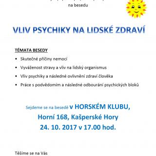 Beseda pro všechny, kteří se chtějí dozvědět jak předcházet nebo se následně zbavit svých zdravotních disharmonií – jak psychických, tak i fyzických.